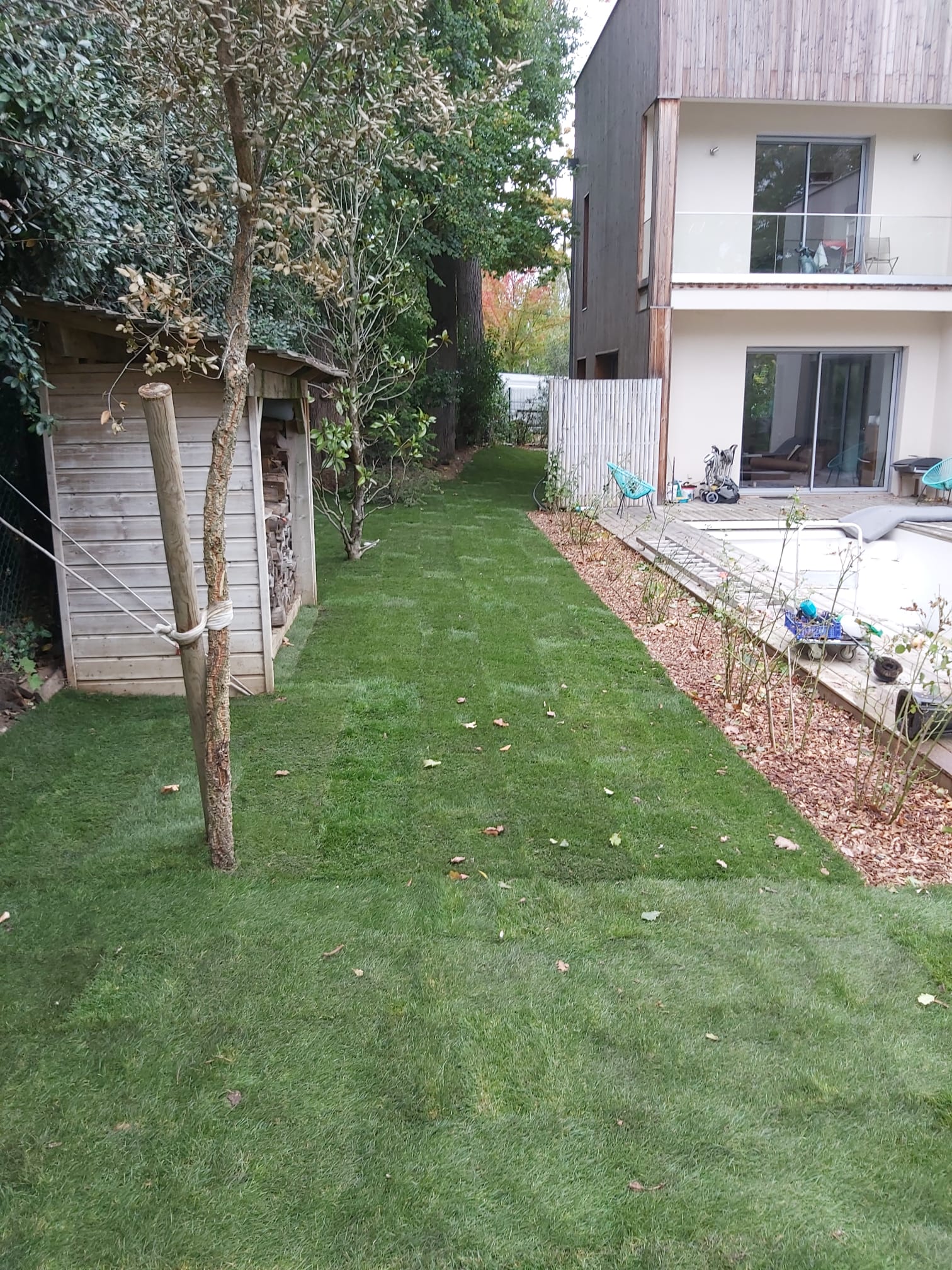 Pose d’un gazon naturel pré-cultivé, pour un rendu immédiat et homogène