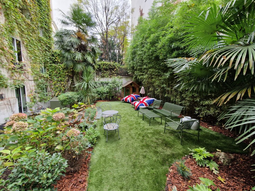 Mobilier extérieur installé sur terrasse rénovée à Neuilly-sur-Seine